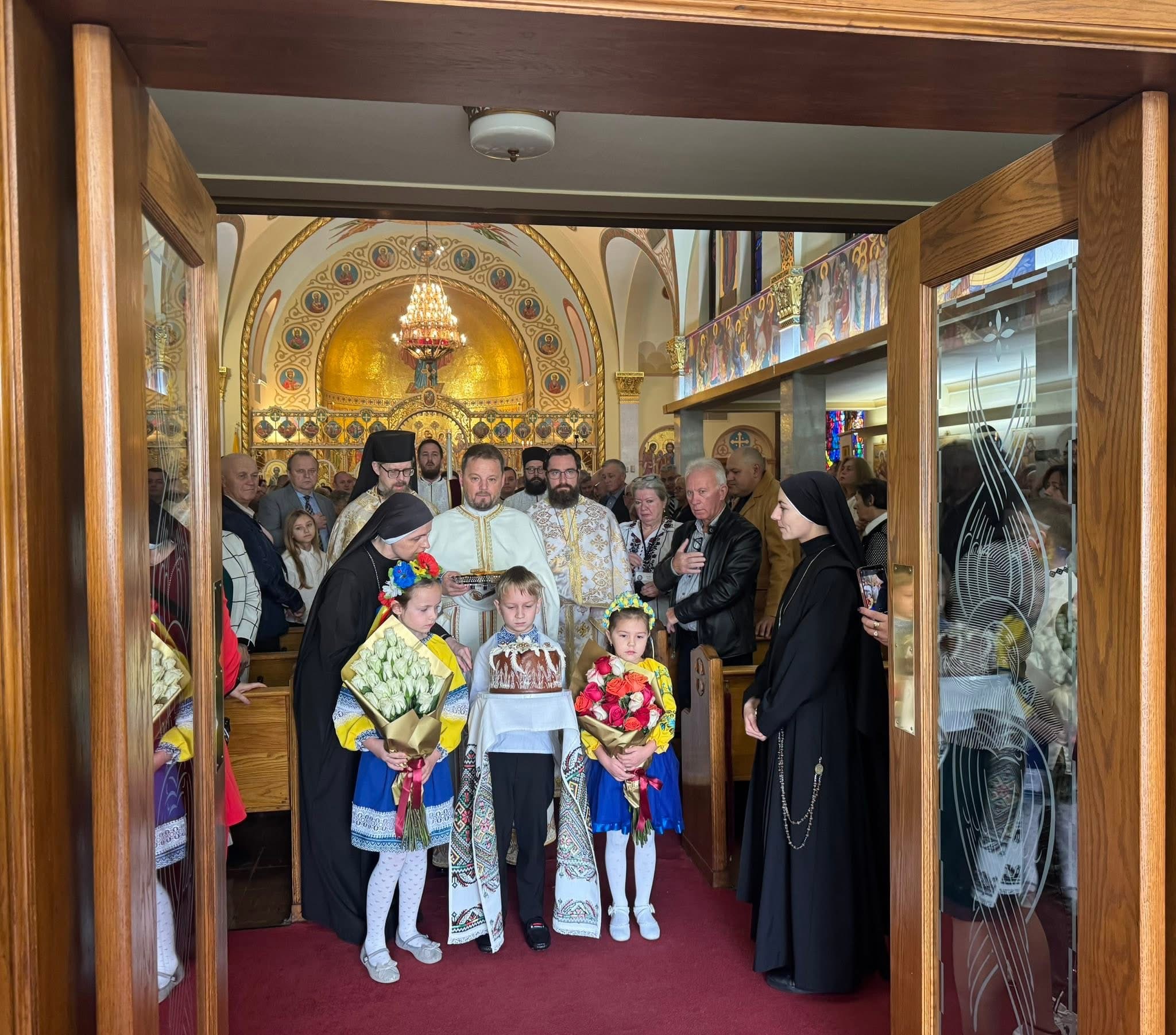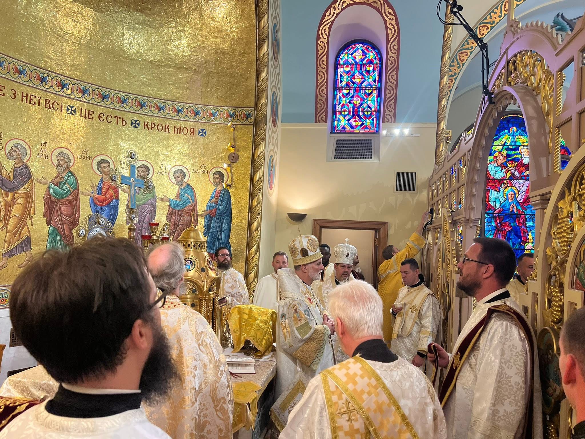 On Sunday, the Hierarchical Divine Liturgy was celebrated amid incense, stained glass, beautiful icons, and the harmonious singing of participants, clergy, and parishioners, a true testament to the living tradition of church music. The hospitality of Assumption parishioners and Assumption Catholic School, the presence of sisters and clergy, and the joyful community spirit left a lasting impression.
