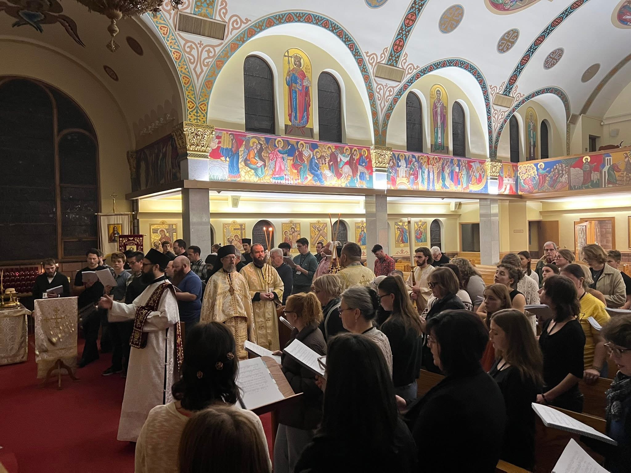 The second day began with Divine Liturgy, celebrated by Archbishop Borys Gudziak with participating clergy and singers. Morning services set a reverent tone, followed by a welcoming breakfast at Assumption Catholic School. Workshops held throughout the day allowed participants to deepen their musical and liturgical knowledge, capped off by Vespers, dinner, and a public lecture by Hieromonk Herman (Majkrzak).